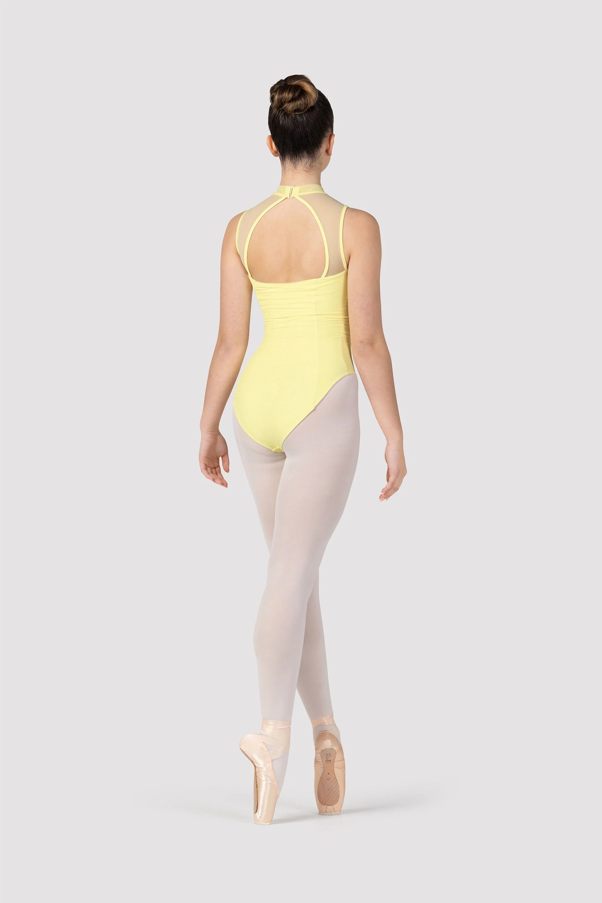 Fashioned with a chic high neck, the Fenella leotard elongates and accentuates the contours of the body. Using sumptuously soft materials for an elevated elegance, the rouched bodice compliments the design with graceful gathers of mesh for an exquisite detail.