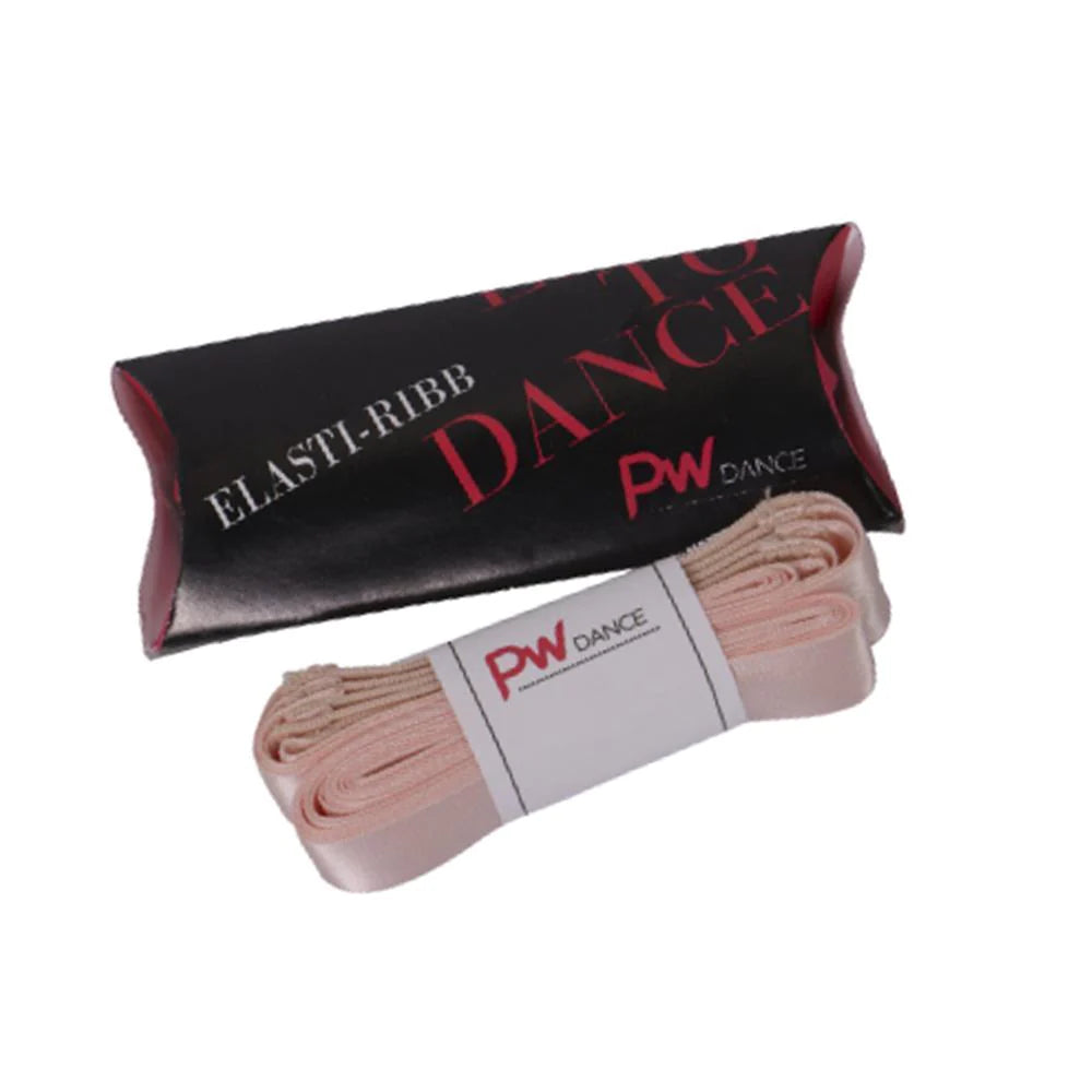 Pair of 2cm wide satin ribbons with elastic joined onto the ribbon to sit around your Achilles tendon.